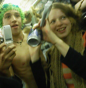飲食や絶叫は当然の状況で、裸になって騒ぐ人、網棚の上によじ登る人なども続出した。