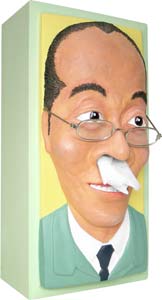 東国原宮崎県知事公認のティッシュ箱ケースが新登場!東国原知事の鼻からティッシュが出てくるちょっぴり気持ち悪いけれど思わず笑ってしまうティッシュケース「知事顔ティッシュケース」。